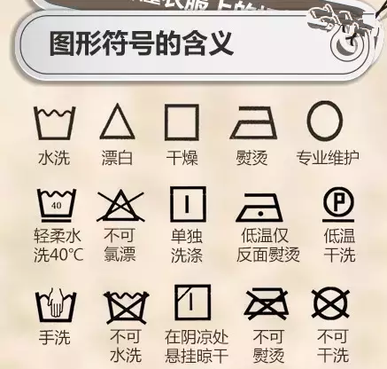 那買回來(lái)的衣服如何清洗、打理?吊牌上的那些圖形符號(hào)你是否油看得明白了,如果還不清楚可要看好下面這些解釋了。