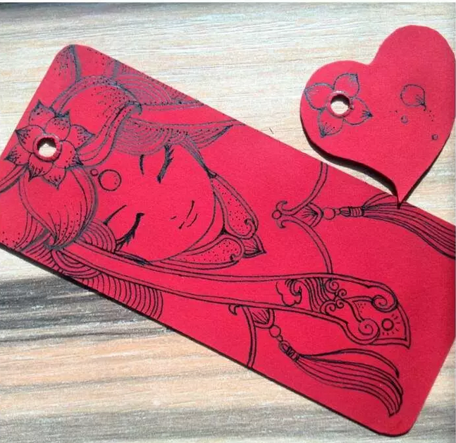 想想還是不能浪費(fèi)了另外一半吊牌,所以決定盡可能的利用到,所以小編將它剪成了一個(gè)紅心,等下可以用來(lái)做輔助裝飾。