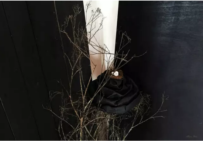 由樹杈上的鳥巢為聯(lián)想來源,