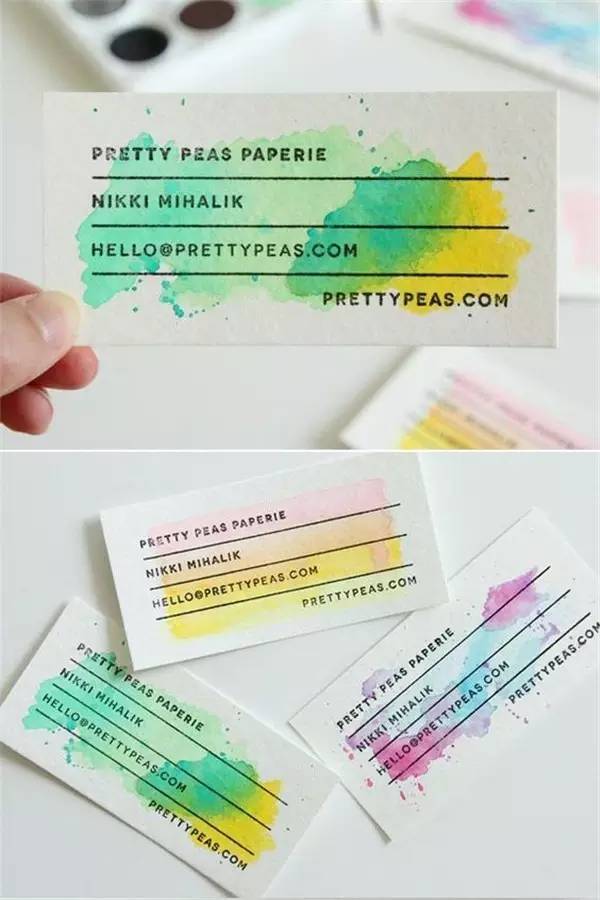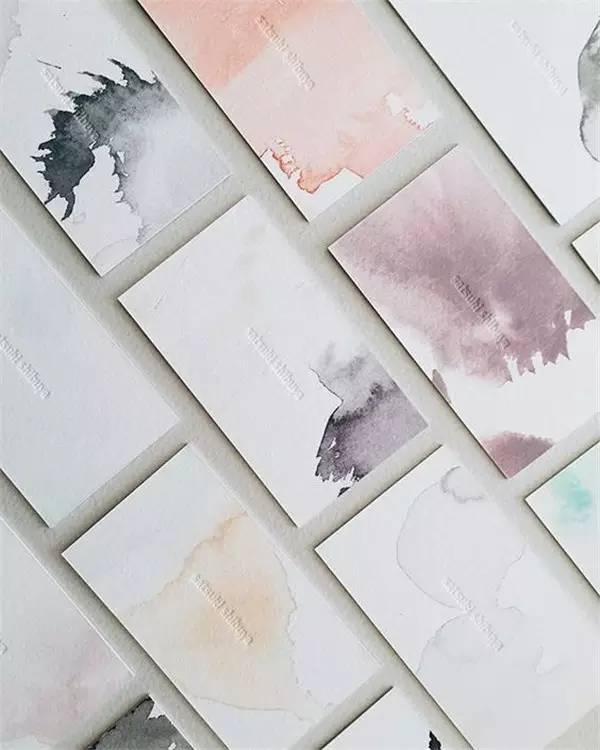 如果你是設(shè)計(jì)師,或是藝術(shù)工作者,名片不用特別正式和商務(wù)范,那么你可以試試水彩的。在白底的名片上,隨意勾勒幾筆水彩,瞬間變得小清新十足。