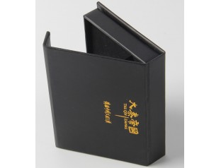 這是一個用來裝紀念刀具的禮盒,盒身為黑色顯得莊重,很適合它紀念盒的身份,盒子表面的燙金文字很是醒目;盒子覆了啞膜,雖然不能像覆光膜那樣發(fā)出噌亮噌亮的光芒,但是亞光膜更顯質(zhì)感;盒子內(nèi)部的題字也是用了燙金工藝,塑料內(nèi)托是刀子的模型,把刀子放進去就嵌到里面,不易脫落;這個盒子的設(shè)計非常的精巧,邊角處理也特別的精致。