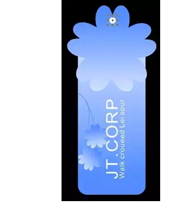設(shè)計(jì)服裝吊牌的第九步:精確剪裁 將做好的“服裝吊牌”正面Ctrl+G群組;然后復(fù)制出一個(gè)放在右側(cè),刪除不需要的元素,將其填充為白色,并“合并”圖形,繪制藍(lán)色矩形放在吊牌反面適當(dāng)位置,執(zhí)行“對(duì)象”→“圖框精確剪裁”→“置于圖文框內(nèi)部”命令,將文字復(fù)制更改方向,得到效果如圖所示。