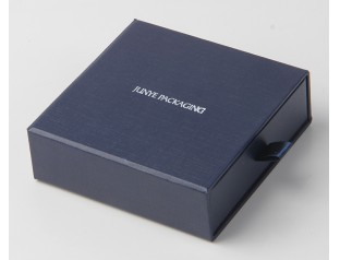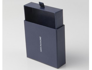 這紙盒子咋一看是黑色的,但認(rèn)真瞧一瞧之后發(fā)現(xiàn)其實它是寶藍(lán)色,盒子表面特殊的花紋處理使盒子變得有質(zhì)感且神秘優(yōu)雅;即使是覆的啞膜,也沒有過多的圖文點綴,但就這么簡簡單單的紙質(zhì)禮品盒也能給人一種端莊而不失優(yōu)雅的感覺;抽屜盒盒型讓盒子更顯精致,也方便禮品的存取,不用擔(dān)心會傷到禮品;盒子內(nèi)部也做了啞膜處理更加的精致,也說明了駿業(yè)包裝做的盒子不止做便面功夫,里面的細(xì)節(jié)也不馬虎。