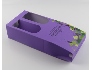 雙支酒包裝盒,采用大氣的葡萄圖案,高貴的紫色,凸顯酒的品質(zhì)。在駿業(yè)包裝廠定做的可折疊酒盒,開窗的設(shè)計,讓客戶一眼就可目睹高貴的紅酒。此紅酒禮品盒內(nèi)采用兩格規(guī)定的形式,保證了產(chǎn)品的安全。
