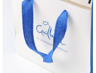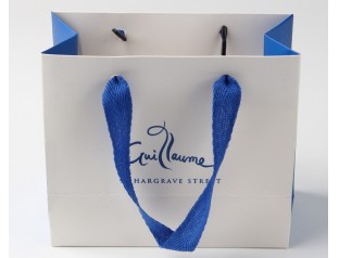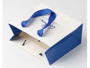 這款t恤紙袋的袋身給人方正大氣,但又不缺少流線圓潤的元素,藍、白相間的顏色搭配給人渾然一體的感覺。t恤本來就給人以一種青春活力之感,用來包裝它的t恤紙袋當然也要是青春靚麗的啦,而藍色和白色就是活力慢慢的顏色。紙袋的文字logo設計讓它有了一絲調(diào)皮感。簡約的設計使得t恤紙袋就像個超凡脫俗的精靈,大氣又不失清新,客人見到無不駐足欣賞。