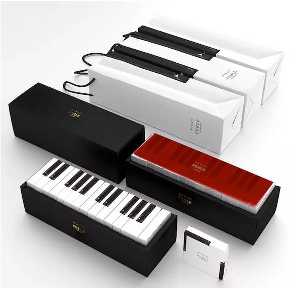 這款鋼琴模樣的蛋糕包裝,是來自日本的創(chuàng)意,設(shè)計師非常討喜的將蛋糕紙盒的側(cè)面包裝,設(shè)計成了鋼琴鍵的樣子,外盒上的黑白包裝也一同呼應(yīng)了鋼琴的主題。這種能呼應(yīng)主題的包裝盒設(shè)計很是討喜呢。
