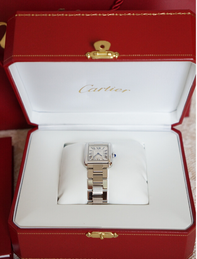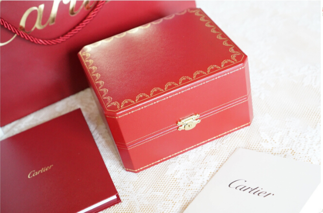 把白色紙盒打開后,出現(xiàn)在我眼前的就是Cartier家最經(jīng)典的紅盒子,有質(zhì)感的皮革制的紅盒子上面用金色的描繪的細節(jié),還附有一本皮質(zhì)包裹有的保證書。