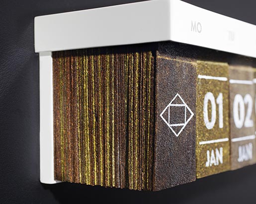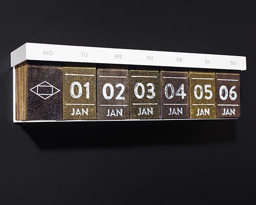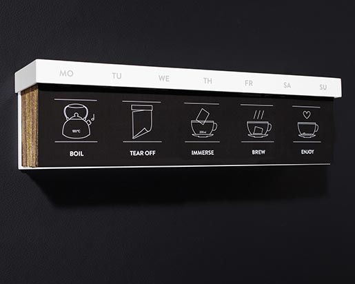 德國茶商Haelssen and Lyon的創(chuàng)意,日歷茶(Tea Cal ar),直接將茶葉處理、壓制成了薄片,上面用可食用的材料印上日期,做成一年的日歷,每天撕下一片來,直接放入開水里就能泡成茶,非常方便又具備時間流逝感讓喝茶的時候能更好的感受和珍惜時間的更迭??梢院鹊陌b設計,很是節(jié)能環(huán)保哦~