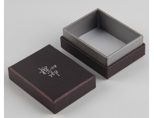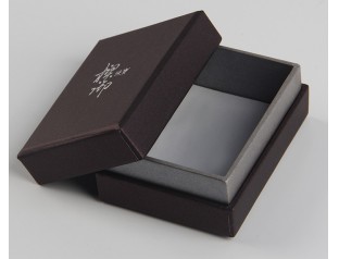 此款珠寶盒包裝采用特種紙裱1000g灰板,商標(biāo)燙銀珠寶盒設(shè)計(jì)天地蓋帶圍邊的盒型,圍邊采用深灰色特種紙裱灰板。廣州駿業(yè)包裝廠定制的首飾盒采用優(yōu)良材質(zhì),流程機(jī)械化與人工的結(jié)合,量身定制中高端包裝盒。