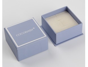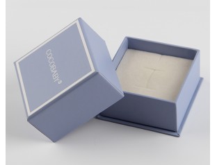 此款首飾盒包裝采用157g銅版紙裱1000g灰板,單色印刷,過啞膠,內(nèi)盒置入雙層海綿內(nèi)托。首飾天地蓋盒設(shè)計采用了淺藏藍色作為整體色,搭配白色的logo,給人 優(yōu)雅又活潑 的視覺感。首飾紙盒置入成型的米白色海綿內(nèi)托,與產(chǎn)品完全吻合,起到固定和美華的作用。