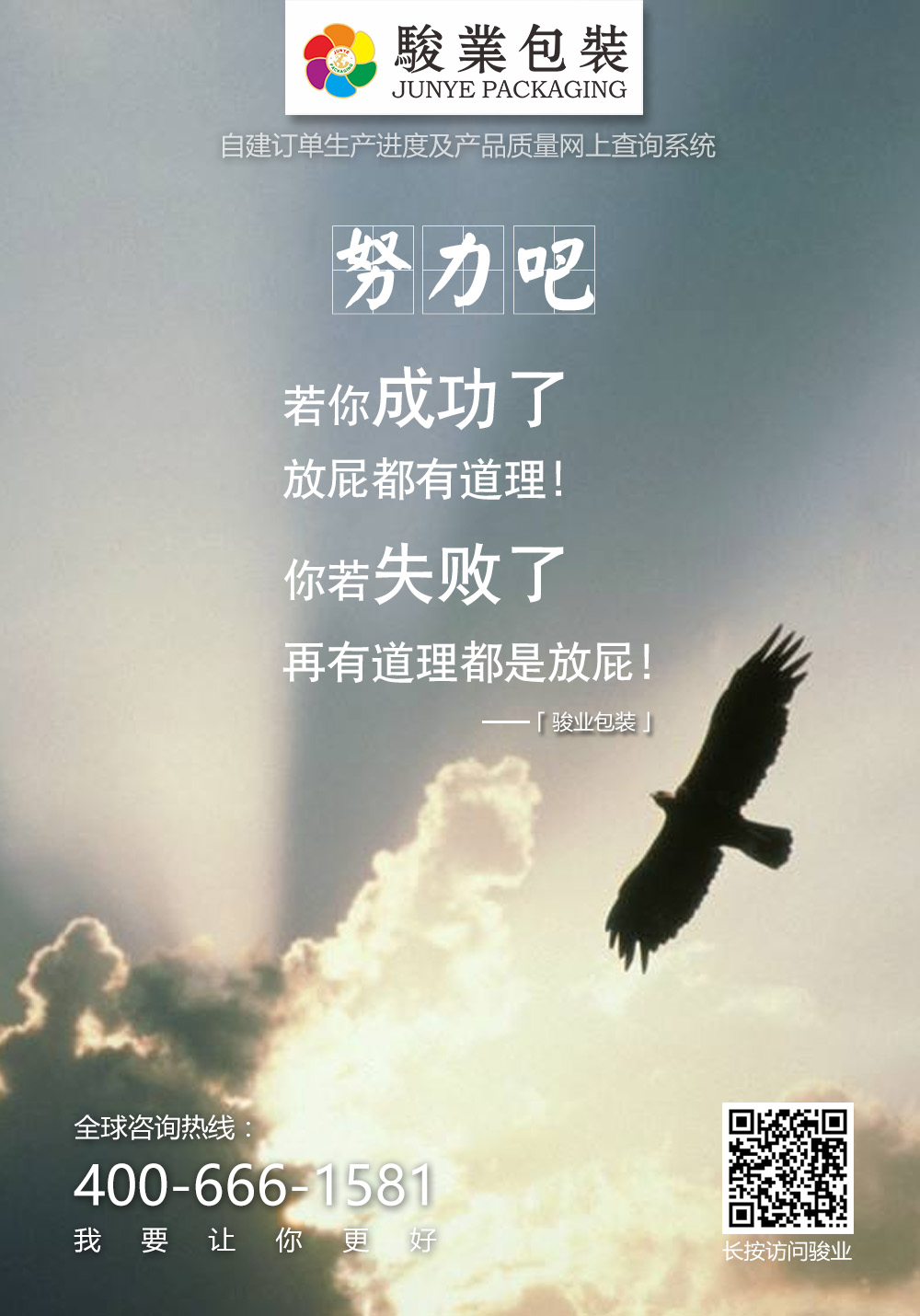 都說成年人的世界里從來沒有容易二字,在這個鋼筋水泥森林里,我們就像一個沒有根的蒲公英在這個城市里飄著,搖擺不定的生活,人來人往,我們每天接觸到各種不同的人,被不同的“氣場”給包圍著,其實(shí)人很容易被周圍的事物影響,或許在來上班的路上剛好聽到一個人在抱怨生活,那么可能你也會覺得生活不易,從而一整天郁郁寡歡,所以為了不讓駿業(yè)包裝的小伙伴們帶著負(fù)能量工作,駿業(yè)包裝的小張為大家每天準(zhǔn)備了一點(diǎn)正能量的雞湯,不用客氣,大家一起來干了這篇雞湯吧!