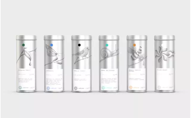 culteavo將自家的茶葉用錫罐作為包裝,每一個(gè)罐子上的都有小鳥、樹葉、蝸牛、蝴蝶等自然圖案。采用素描的手法,根據(jù)圓點(diǎn)之間疏密關(guān)系排列出來。而罐子下面的白色標(biāo)簽則寫清了使用方式,都使茶葉包裝盒顯得十分素雅,就沖著這那么有藝術(shù)感的茶葉包裝,我一定要收藏幾罐茶葉,誰都不要攔我!