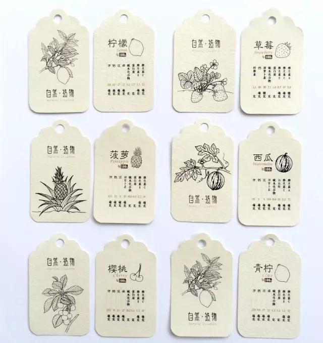 標(biāo)簽——畫出了每種水果的生長形態(tài),標(biāo)簽背面是水果的營養(yǎng)價(jià)值。人們可以通過這個(gè)標(biāo)簽來了解水果,等于上了一堂生物課啊!