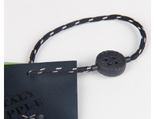 此款服裝吊牌制作,采用400g雙銅紙,商標(biāo)燙銀服裝吊牌設(shè)計采用了綠色和黑色的搭配,能給人一種協(xié)調(diào),美觀,大方的感覺。服裝吊牌制作加上尼龍圓繩的暗扣吊粒,簡單,清新。
