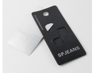此款品牌吊牌采用黑卡紙對裱,商標燙銀,黑卡紙是特種紙的一種,其表面平整光滑,挺度好,拉力好,耐破度高品牌吊牌設計整體采用黑色作為主打色,搭配醒目的燙銀LOGO,經典的黑白搭配,彰顯其品牌價值廣州駿業(yè)包裝廠的吊牌定制,跟進客戶要求免費設計,量身定制,流程機械化與人工結合打造出中高檔服裝吊牌。