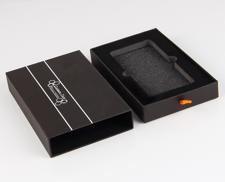 4、電子類禮品盒:如MP3、U盤或手機盒等。材料多采用157~210g銅版紙或啞粉紙,裱800~1200g雙灰板,也可用布紋紙或其它彩色特種工藝紙。 印刷:多以4C+0印刷,可印專色(專金或專銀)。 后道工藝:有過光膠、啞膠、局部UV、壓紋、燙鉑(有金色、銀色、寶石藍色等多種色彩的金屬質感膜供選擇)或過防偽膜(使他人難以仿造),內裱紙為157g銅版紙,不印刷。 內盒(內卡):常用發(fā)泡膠內襯絲綢絨布、海綿或植絨吸塑等材料。盒開口處嵌入兩片磁鐵,后道工藝多以手工精心制做。此種造型為書盒式,選用材料按實際產品需要和檔次來選擇,確保安全防振、美觀、經濟、時尚。