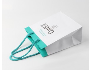 此款禮品包裝紙袋采用250g單銅紙,雙色印刷,過啞膠,自扣尼龍圓繩手提紙袋設(shè)計走小清新的風(fēng)格,整體采用白色作為主打色,搭配天藍(lán)色紙袋設(shè)計的提手處選用了天藍(lán)色的尼龍圓繩,小清新的白色和藍(lán)色搭配是藍(lán)天白云這樣一對經(jīng)典的組合,給人舒心的感覺