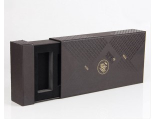 這個(gè)禮品盒定制選用的材質(zhì)是1000可白板紙為內(nèi)紙,裱紙則是雙銅紙,盒型是抽屜盒,盒身覆啞膠,看起來高貴神秘;可以看到這個(gè)禮品盒的表面布滿了用uv印刷出來的文字,在不同的角度可以看到不一樣的效果,這也是防偽的一種方法;盒子的logo采用的是燙金工藝,金燦燦的字體往往能讓人印象深刻,同時(shí)也凸顯了品牌質(zhì)感。